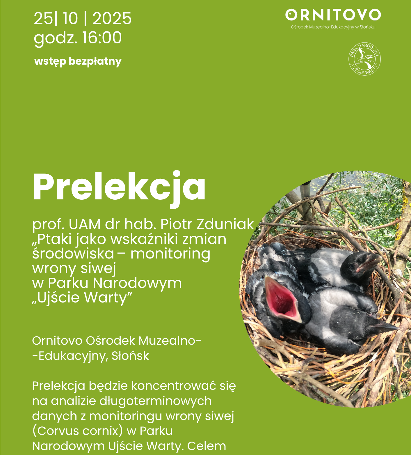 Park Narodowy „Ujście Warty” zaprasza na prelekcję pt. „Ptaki jako wskaźniki zmian środowiska – monitoring wrony siwej w Parku Narodowym „Ujście Warty”. Wydarzenie odbędzie się 25 października 2025 r., godz. […]