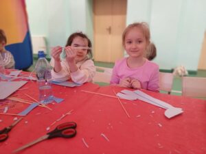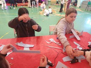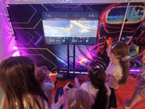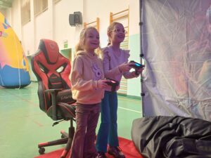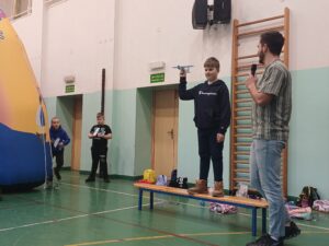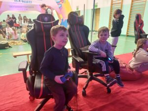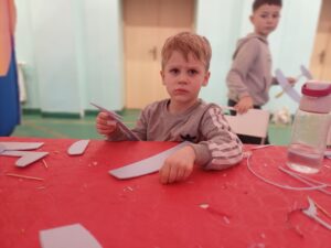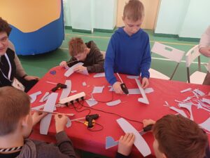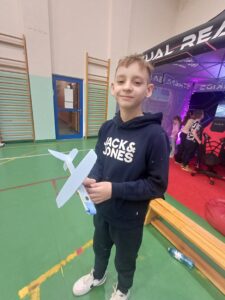 Środa była dniem pracy kreatywnej i manualnej, dzieci od podstaw budowały swoje szybowce oraz tworzyły zimowe świece sojowe. Po obiedzie wyruszyliśmy w wirtualny świat gier, były wyścigi samochodowe, mecze piłki nożnej i okulary VR, a w nich malowanie swojego graffiti na ścianie. Na zakończenie tego dnia czekały na nas zawody z puszczania szybowców – było odlotowo!