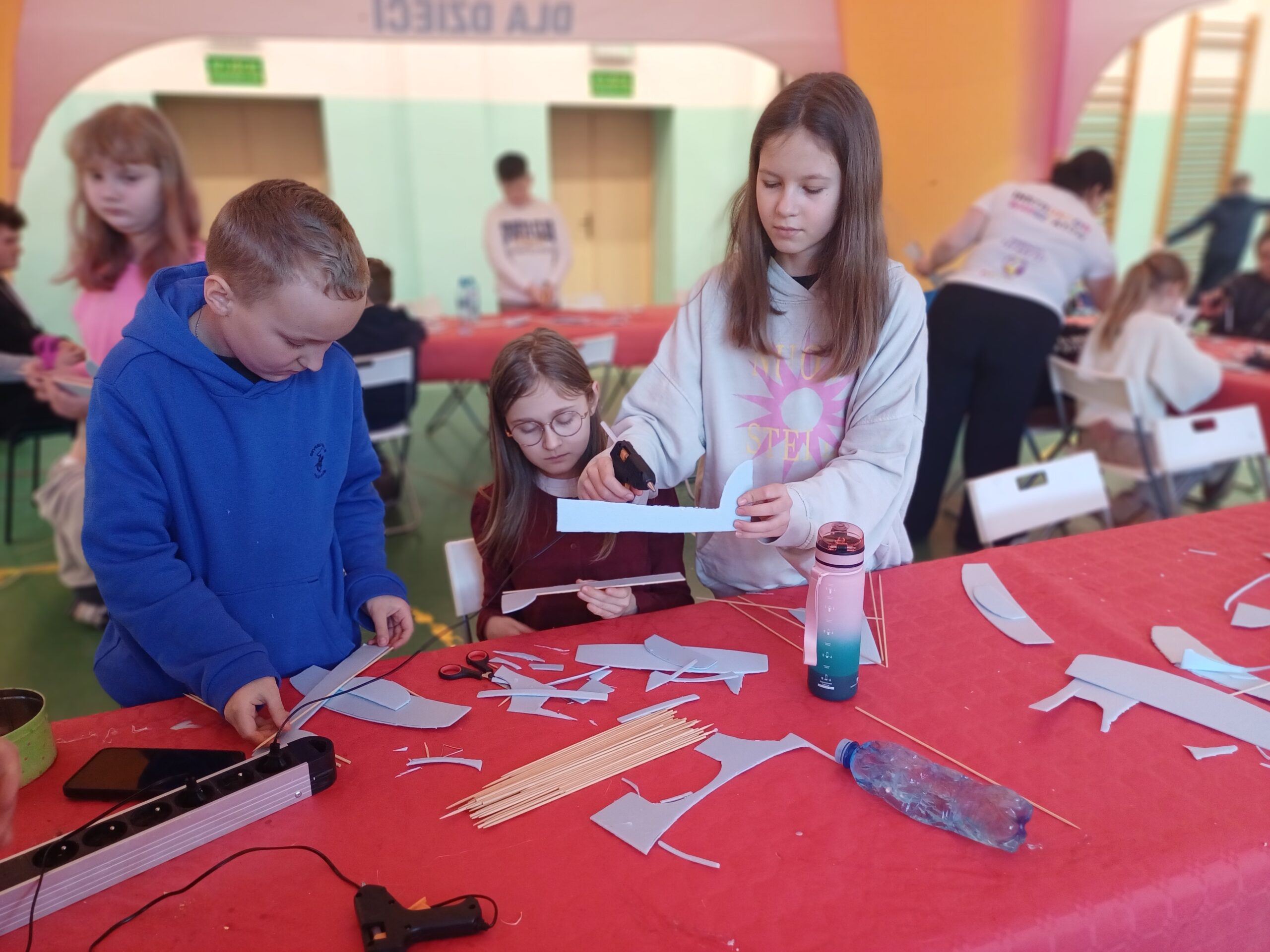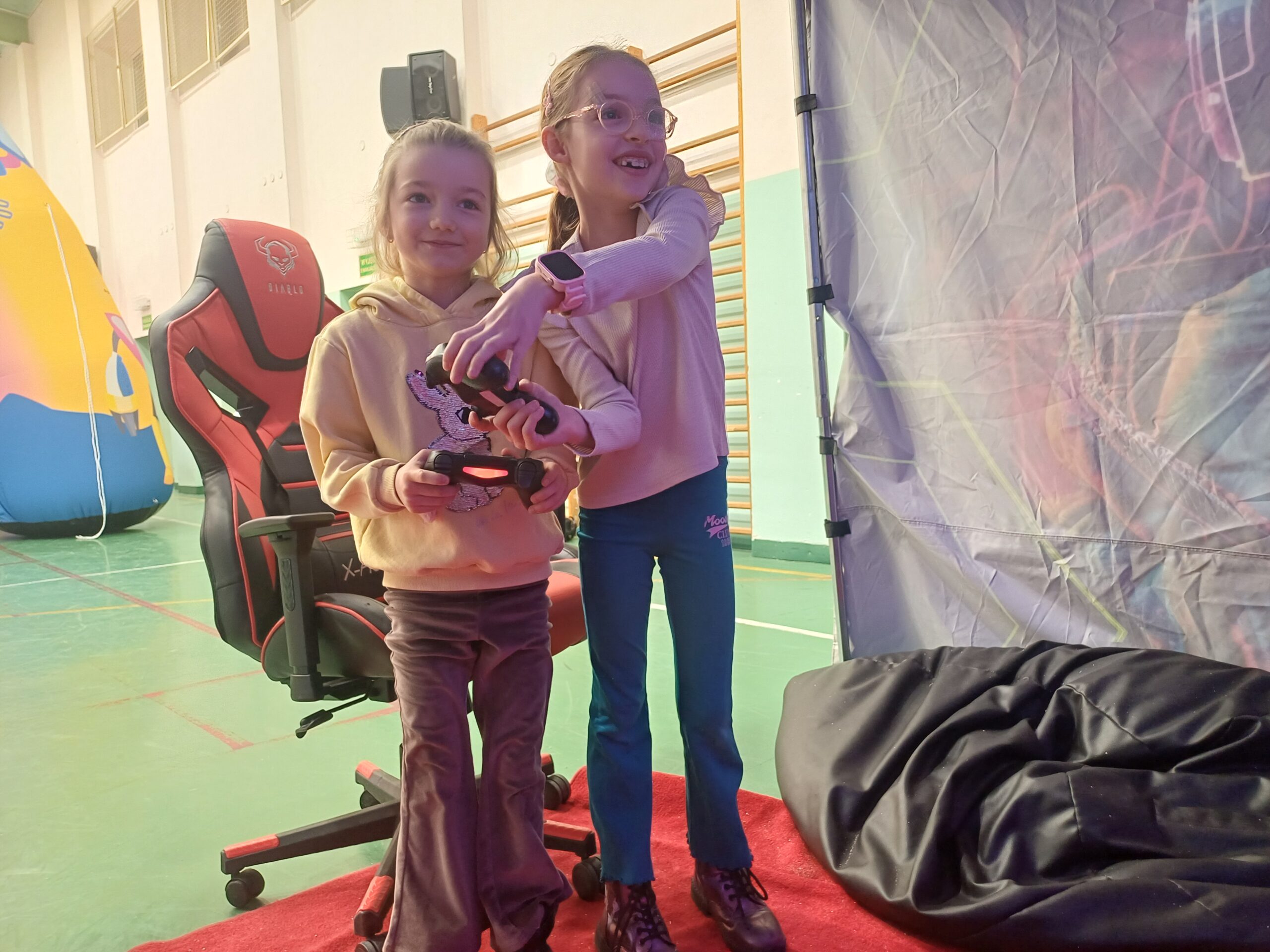 Środa była dniem pracy kreatywnej i manualnej, dzieci od podstaw budowały swoje szybowce oraz tworzyły zimowe świece sojowe. Po obiedzie wyruszyliśmy w wirtualny świat gier, były wyścigi samochodowe, mecze piłki nożnej i okulary VR, a w nich malowanie swojego graffiti na ścianie. Na zakończenie tego dnia czekały na nas zawody z puszczania szybowców – było odlotowo!