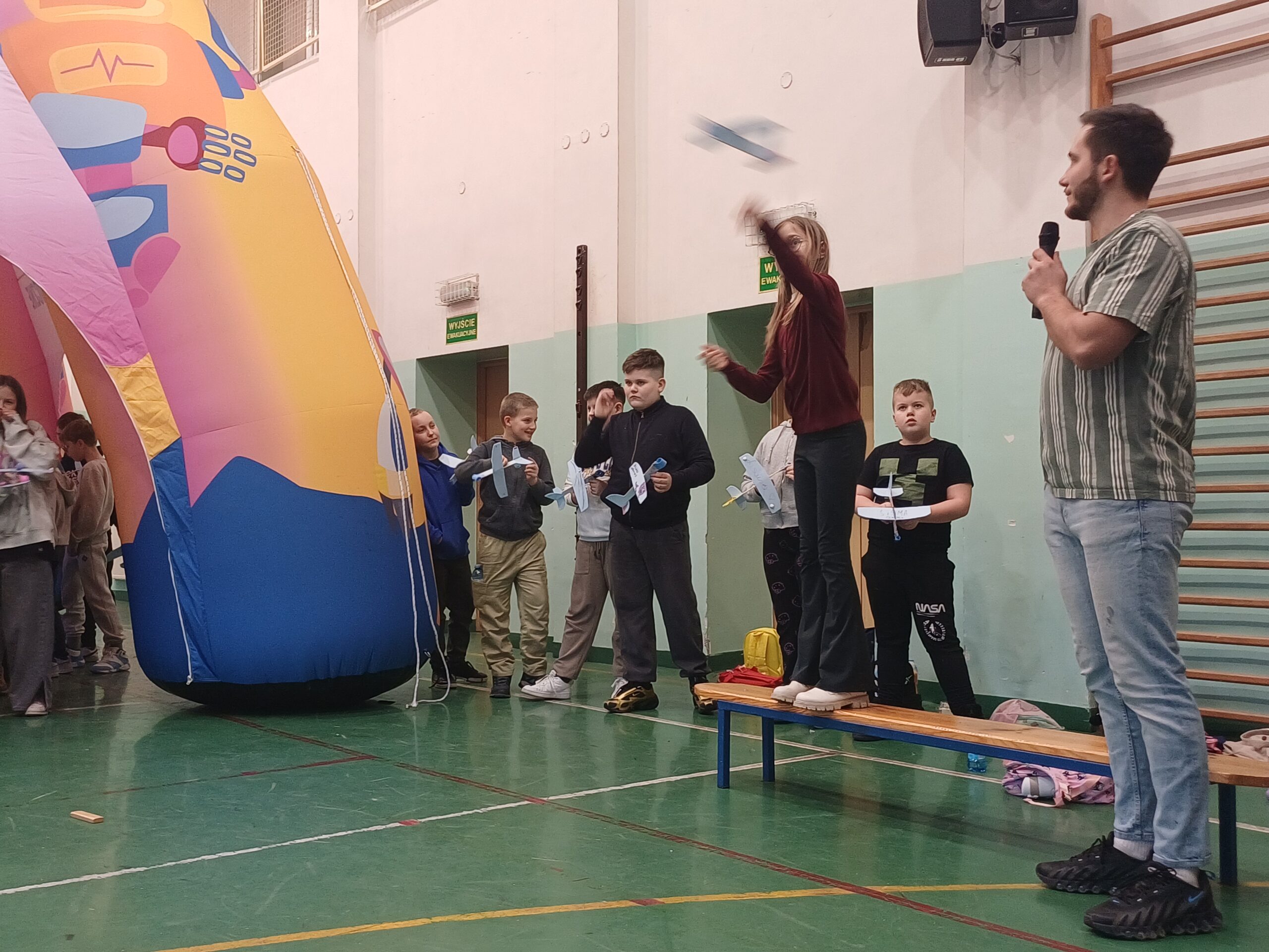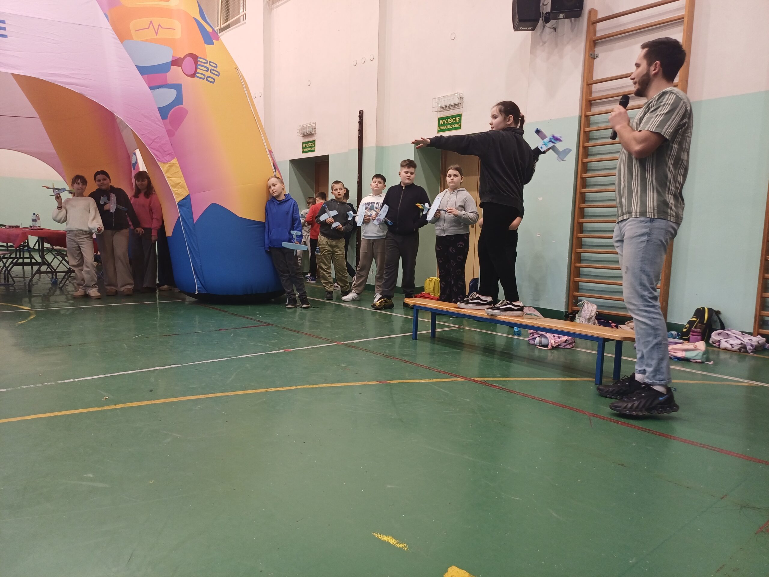 W sali gimnastycznej czekały na nas trzy duże urządzenia, jedno z nich miało aż 7 metrów- wow!